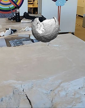 The model and slab were both photo-scanned to create an interactive experience where users could place the ball model on different surfaces to appreciate the natural differences in materials and texture. This is intended to provide further emphasis on the transition between the creation and decay process in nature.